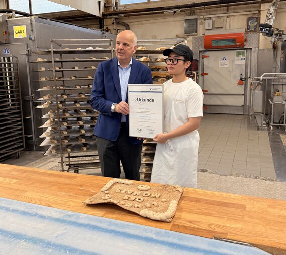 Thu Trang wurde aufgrund ihres großen Engagements und ihrer sehr guten Leistungen von unserem stellvertretenden Backstubenleiter für diese Auszeichnung vorgeschlagen. Nach der anschließenden Prüfung durch die Handwerkskammer stand fest: Sie hat die Auszeichnung verdient – und auch erhalten.