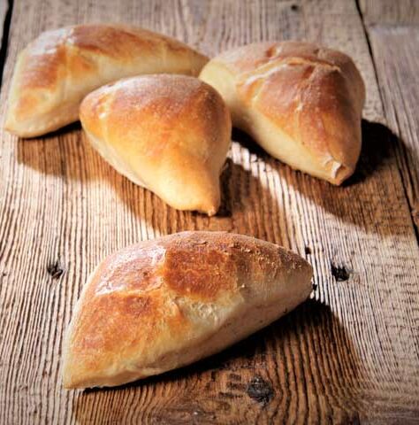 Kleines Weizenbrötchen mit Weizensauerteig, der für ein besonderes Aroma sorgt. Wahlweise oben ohne oder mit Mohn, Sesam, Käse oder Sonnenblumenkernen.