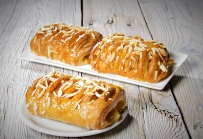 Lockerer, goldbraun gebackener Plunderteig, gefüllt mit fruchtigen Apfelstückchen und verfeinert mit…