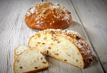 Mehr erfahrenAus feinsüßem Butterhefeteig mit Rosinen und Mandeln gebacken, ideal als Frühstücksbrot oder für die…