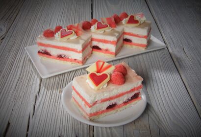 Mehr erfahrenLockerer Marmorrührteig mit Kirschen, abgerundet mit zarter Vanillecremefüllung, überzogen mit Kuvertüre.