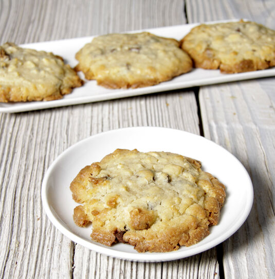 Verführerischer Cookie, der aus hochwertiger Butter und Mandeln gebacken wird, wodurch er eine zartschmelzende Textur erhält. Großzügige Stücke aus samtiger dunkler und cremiger heller Schokolade sind kunstvoll darin verteilt und sorgen für einen harmonischen Geschmackskontrast. Dieser Cookie vereint den vollmundigen Geschmack von Schokolade mit der feinen Süße der Mandeln, um ein unwiderstehliches Geschmackserlebnis zu schaffen.
