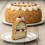 Feiner Wiener Boden gefüllt mit Vanillebuttercreme und Johannis-Himbeer-Konfitüre und mit Krokant dekoriert.