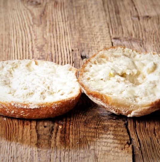 Ihr Gebäck bestrichen mit Butter. Das Gebäck auf dem Foto ist ein Muster und nicht beim Belag enthalten.